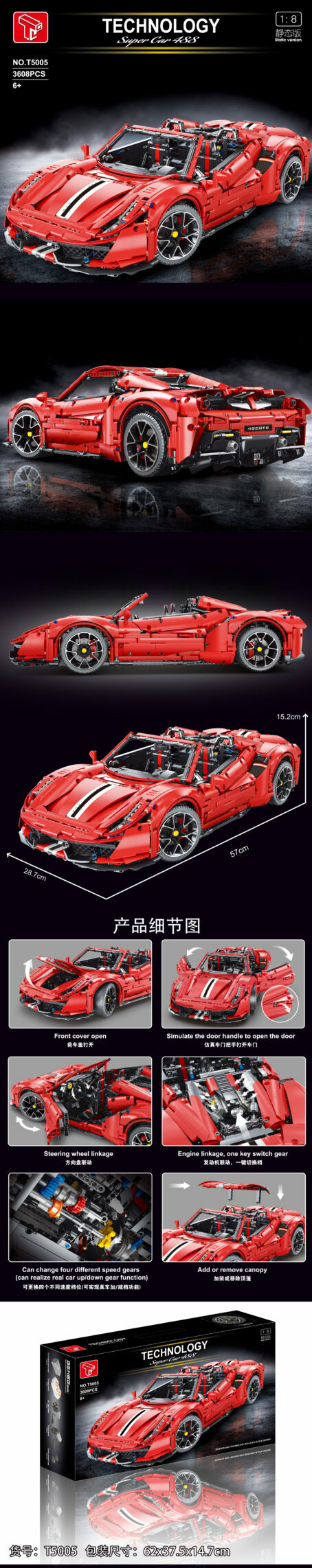 TGL Technology T5005 1:8 -Ferrari Pista Super Car 488 Technik Bausteine